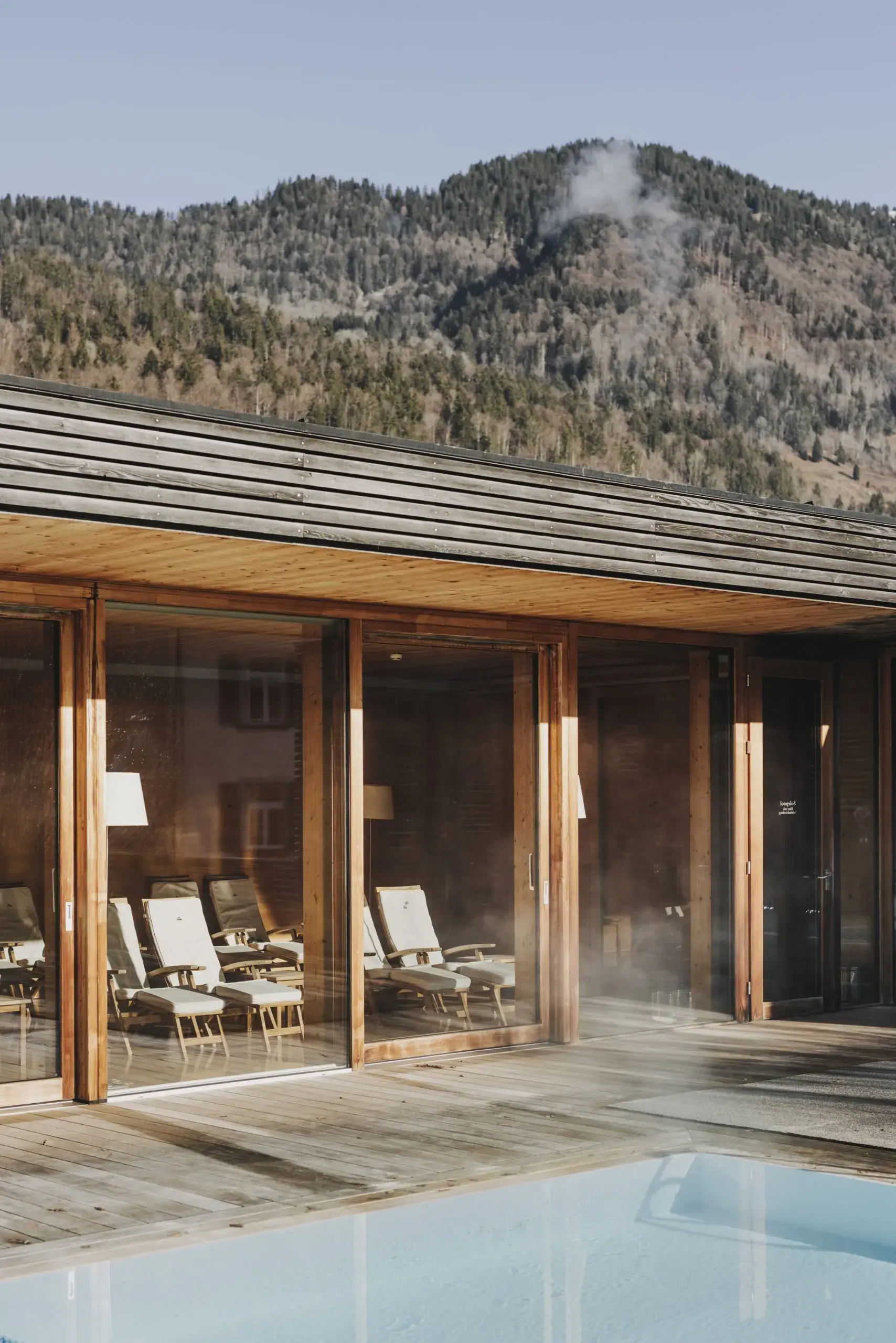 Отель находится в живописной долине Bregenzerwald в австрийских Альпах и сочетает глубокое погружение в природу с высококлассным спа-базисом.