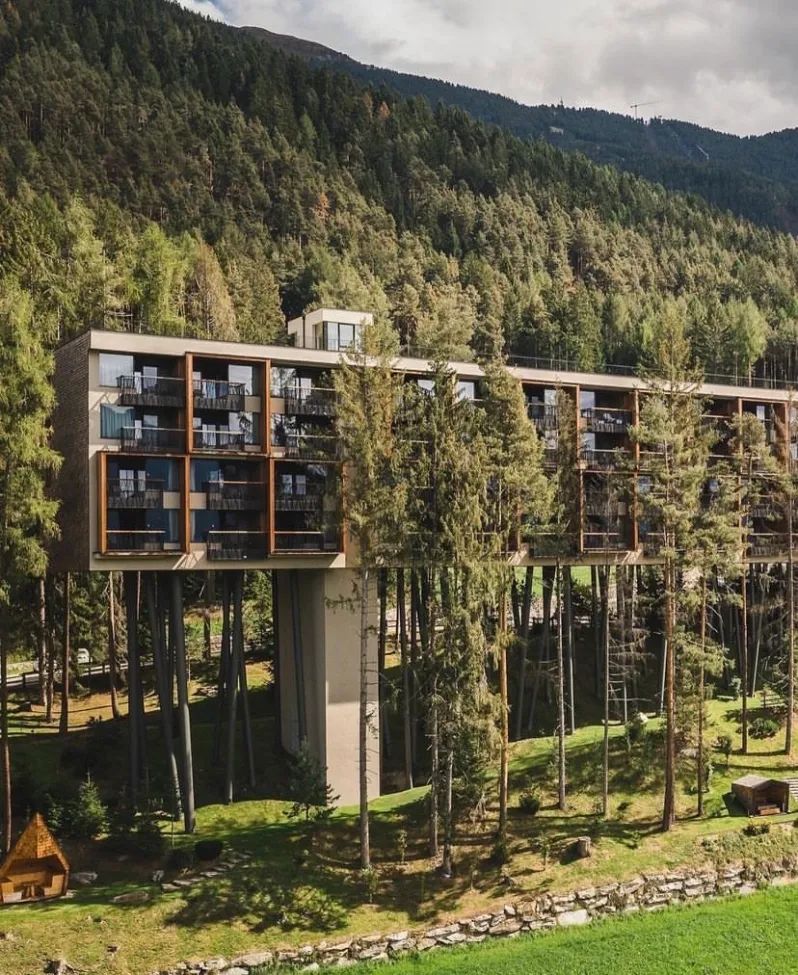 Уникальный отель среди деревьев на юге Тироля «дом на сваях», расположенный на высоте около 960 м над уровнем моря на склоне горы Plose. Архитектура на сваях, панорамные сьюты из дерева и камня, спа-пространство площадью 2 500 м² и атмосфера полного уединения создают ощущение покоя и связи с природой. Формат Adults Only приглашает к глубокому восстановлению, где дыхание леса становится фоном для внутреннего равновесия и вдохновляющего отдыха.